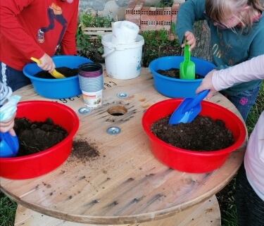 - Observer et reconnaitre les fruits et légumes du jardin. - Découvrir les étapes de la graine au fruit. - Observer, reconnaitre et identifier les plantes aromatiques par un jeu des senteurs. - Découvrir les vertus des plantes aromatiques. - Connaitre les besoins d’une plante. - Semer une graine dans un pot individuel (à emporter).